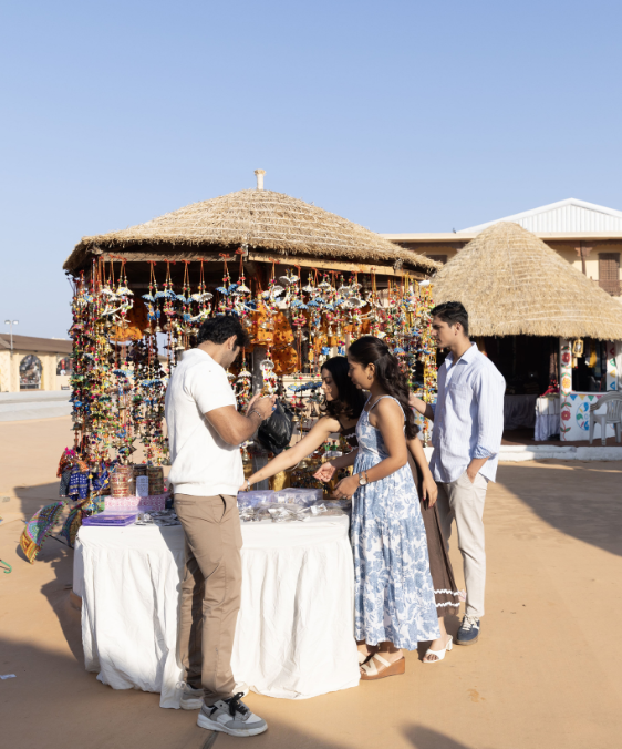 As evening falls, the Rann Utsav ignites with color, rhythm, and tradition. Enjoy soulful folk music, vibrant dances, and centuries-old customs as drums echo across the salt flats, transforming the White Desert into a living celebration of Kutchi heritage.