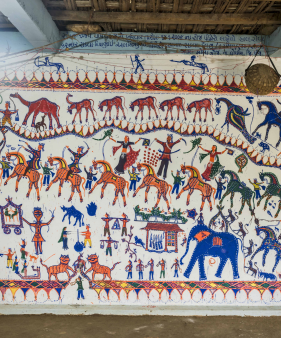 Pithora painting, a vibrant ritual folk art of Gujarat.